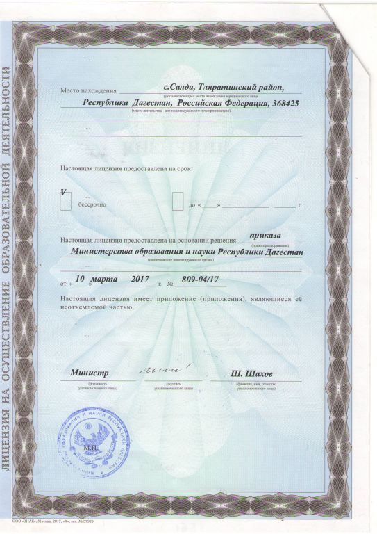| Адрес местонахождения образовательной организации* | 368424,Республика Дагестан,Тляратинский район,с.Салда, |